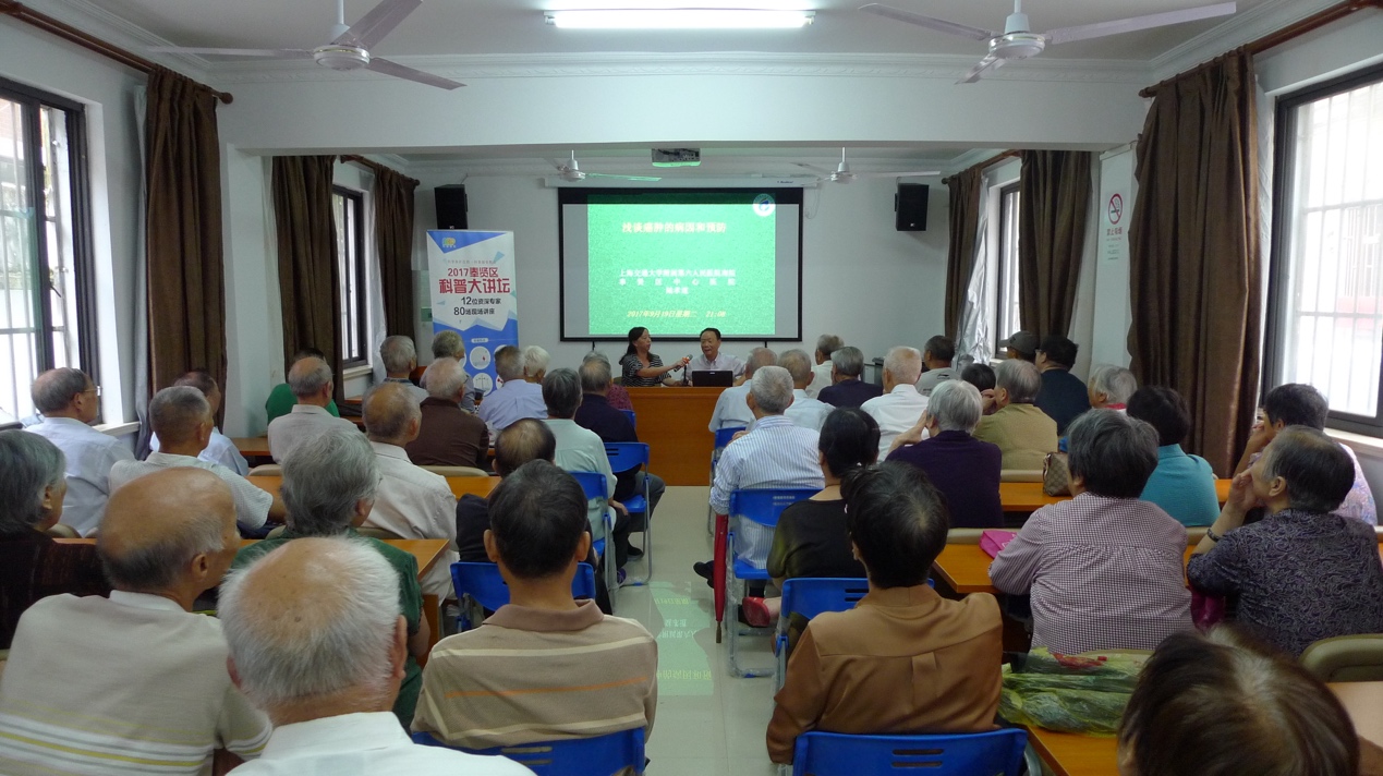 发布时间:2017-09-22 9月20日,在南桥镇解放二居居民活动室内举办了“浅谈癌肿的病因和预防”科普讲座。本次讲座为由区科委、科协主办的科普大讲坛系列科普讲座之一,区中心医院主任医师陆孝道受邀主讲,居民们热烈响应,共有近70位居民前来听讲。