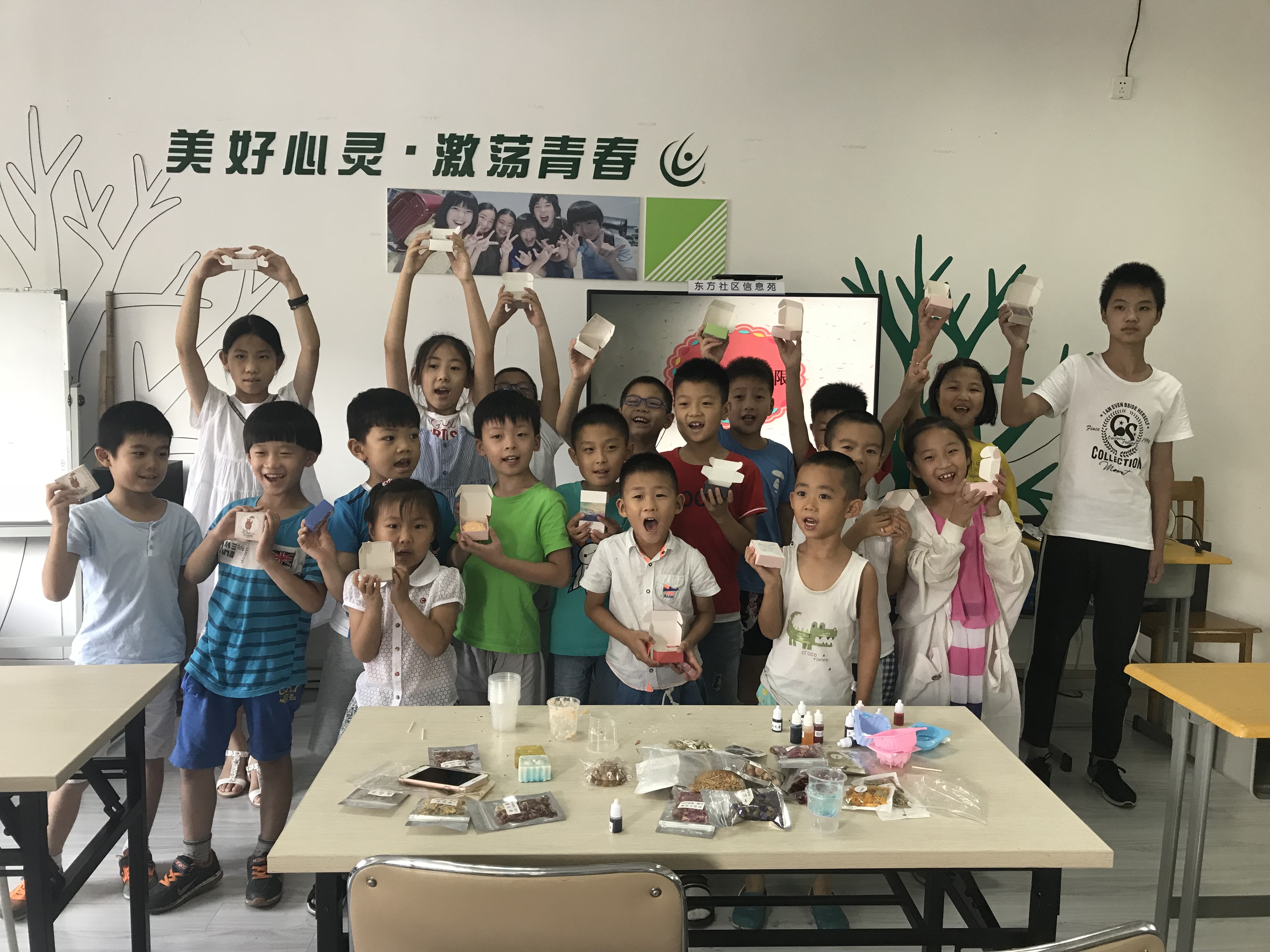8月4日,奉浦社区创新屋和庄行社区创新屋分别举办了欢乐暑期活动之创“皂”无限DIY活动,现场共有40位小朋友参加活动。