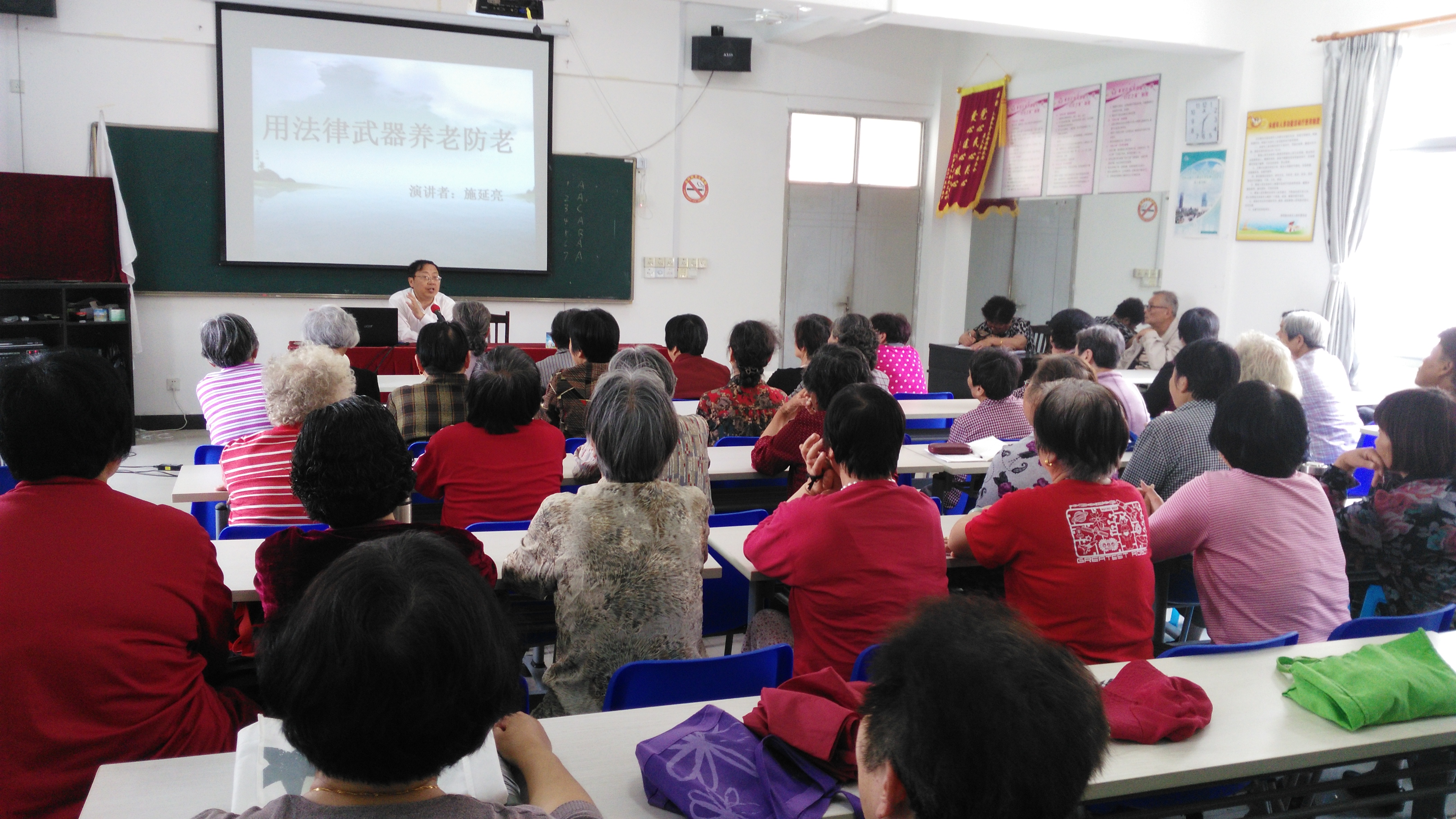 6月5日下午,上海师范大学施延亮教授在星火社区开展了以《用法律武器养老防老》为主题的知识讲座,这次讲座专门针对老年人普遍关心的赡养、财产分配、遗嘱、遗赠等问题,为老年人上了一堂生动、贴心的法律维权课。