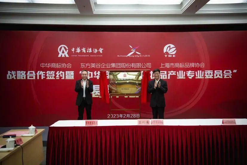 中华商标协会、东方美谷企业集团股份有限公司、上海市商标品牌协会战略合作签约暨“中华商标协会化妆品产业专业委员会”揭牌 发布时间:2023年03月01日