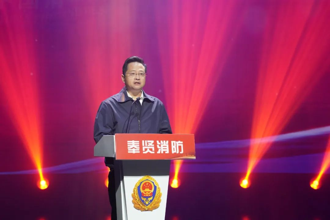 袁泉代表区四套班子向市消防救援总队长期以来的关心和支持表示感谢,向全区消防指战员、政府专职消防员以及家属致以诚挚慰问。他表示,长期以来,区消防救援支队有效防范应对各类灾害事故,特别是在进博会、东方美谷大会等重大活动赛事期间夜以继日、连续奋战,为城市运行筑牢了安全屏障。面向未来,要压紧压实党委政府领导责任、部门监管责任和企业主体责任,坚持重在预防,着力补短板强弱项,筑牢高质量发展安全防线。要开展形式新颖、寓教于乐的宣传活动,营造消防安全浓厚氛围,构建共建共治共享的消防工作新局面。要高度重视省级政府安全生产和消防工作考核巡查,落细落实相关工作任务,推动全区消防事业蓬勃发展,为奋力走好“奉贤美、奉贤强”高质量发展新征程作出新的更大贡献。