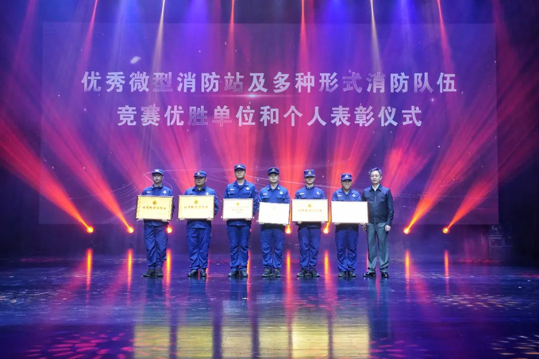 区政协主席陈勇章为优秀微型消防站及多种形式消防队伍竞赛优胜单位和个人代表颁发荣誉。