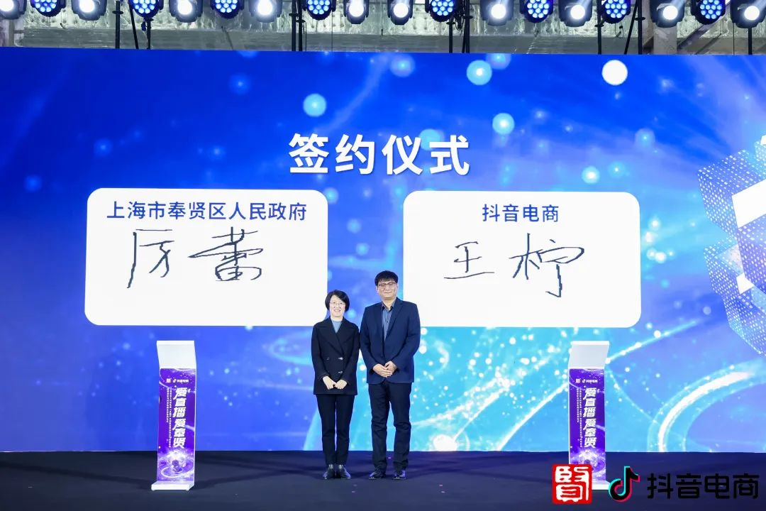 奉贤区人民政府与抖音电商现场签约,“直播产业创新发展示范点”正式揭牌。