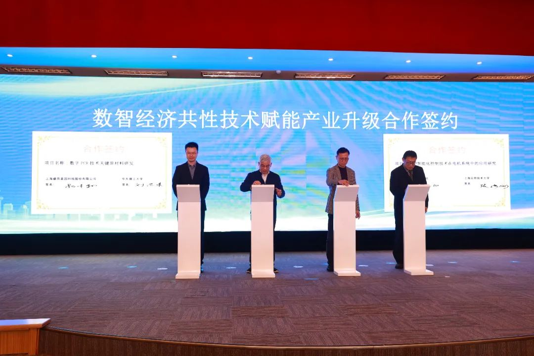 权星智控系统工程(上海)股份有限公司与上海电子信息职业技术学院、上海屹锂新能源科技有限公司与上海交通大学、上海睿昂基因科技股份有限公司与华东理工大学、上海海光电机有限公司与上海应用技术大学围绕数智经济共性技术赋能产业升级进行了合作签约。其中,权星智控和电子信息学院、睿昂基因与华东理工分别介绍了双方达成合作的过程。
