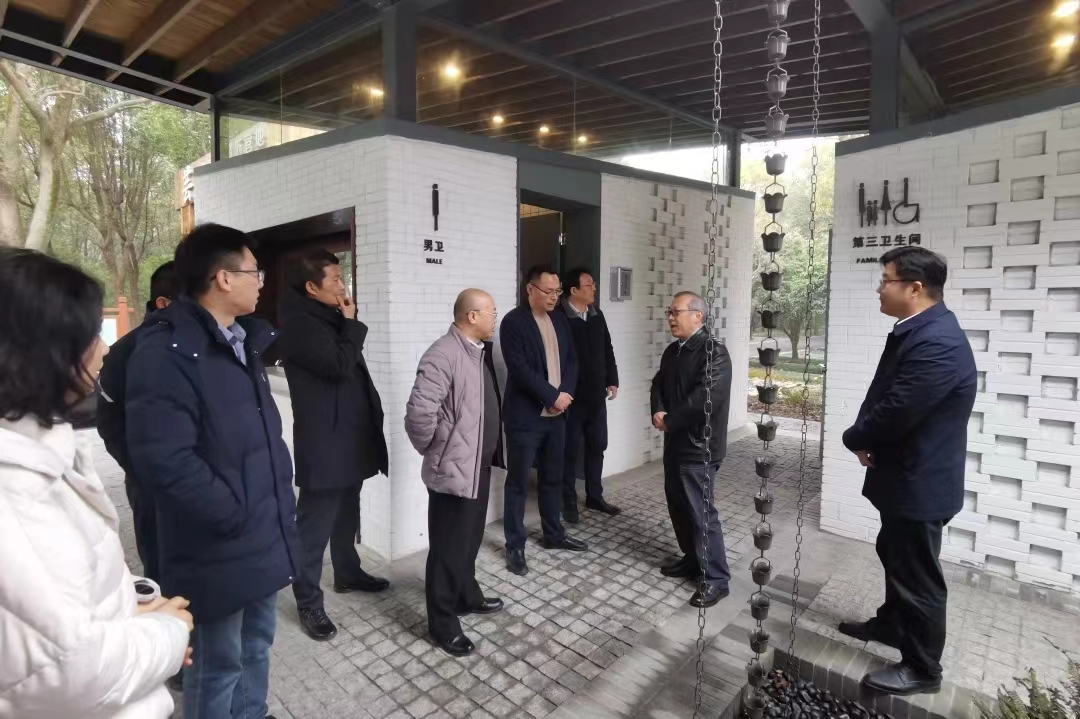 缪钧同志一行先后实地察看、听取了金汇镇新强村鎏园公厕在低碳环保材料再利用、生态环保水处理以及适老化适幼化改造、24小时开放的情况;庄行镇渔沥村农场外公厕在模块化设计、传统建筑文化景观打造、引入深度保洁设备等方面的情况。现场与大家沟通交流了农村生态型公厕建设、管理工作的相关意见。