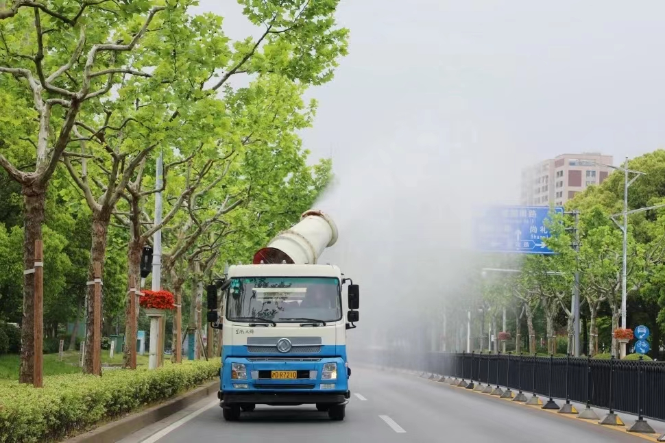 正值春夏交替之际,区绿容局根据相关工作要求,聚焦果毛飘絮等季节性特点,积极落实空气清洁行动各项应急措施,出动雾炮车、新能源冲洗车等作业设备,开展抑尘和冲洗保洁,全面控制道路扬尘污染。针对重要道路、主要景区、高标准区域、大型商圈以及易脏地段加强冲洗力度,减少道路路面积尘,给市民提供一个干净整洁的市容环境。