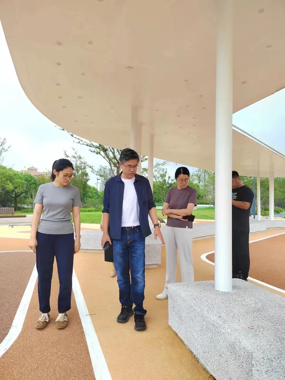 加强公园绿地隐患排查。9月25日,局党组副书记、副局长凌军一行带队对乐活公园、萧塘公园等奉贤区2024年新建公园的建设情况开展了检查。主要查看公园建设进度、质量、安全及开园前的注意事项,如台风过后的苗木支撑确保稳固,S4桥下空间未建成区域的需临时封闭,健身区域坐凳需设置警示标识等。9月26日,局党组副书记、副局长凌军一行带队对古华公园、上海之鱼城市公园、南上海中央公园等人流量较大的公园开展了检查。主要查看游乐设施的安全防护、便民设施的开放进度等,如新增公厕确保节前开放、沿河护栏需及时维护、蚂蚁乐园滑索绳定期更新、施工区域增加围网等。