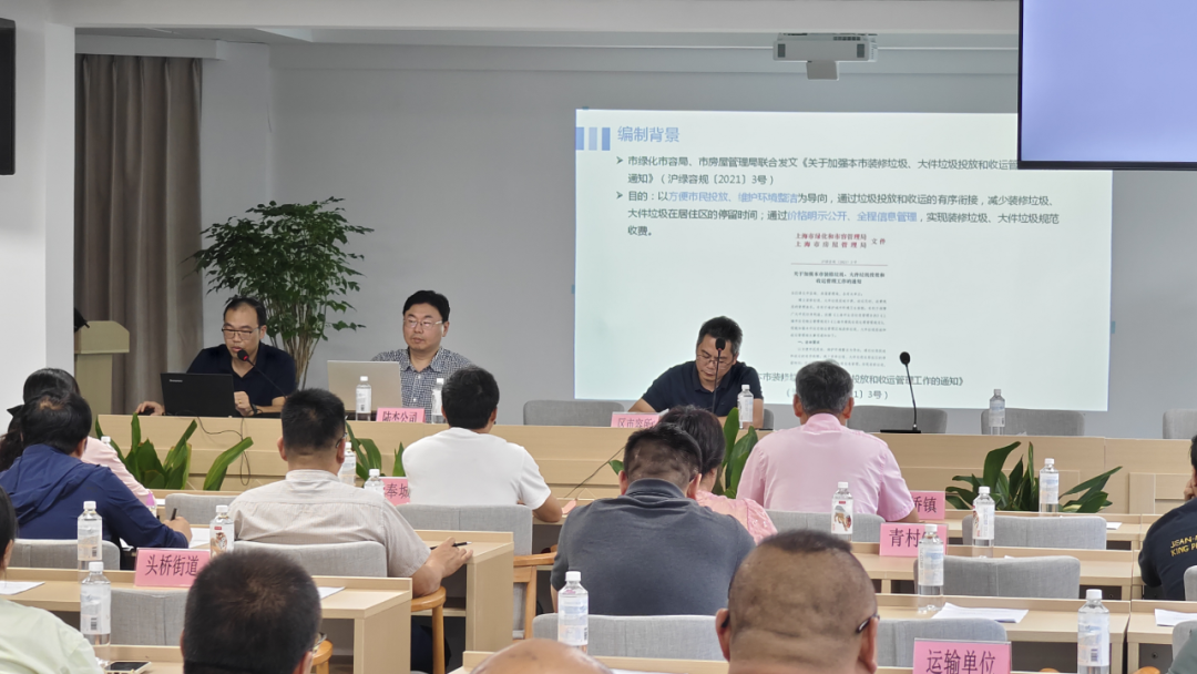 会上,区市容环境卫生管理所首先对近期市局发布的《上海市装修垃圾规范投放及处理指引》等最新政策进行了详细解读,明确了装修产生垃圾种类、产生者义务、预约清运方式、投放方式、堆放场所设置类型、投放管理者义务、违法违规行为处理等管理要求。其次对“奉贤区装修垃圾预约清运小程序”试行以来运行情况开展交流,并对预约小程序使用中的居民、物业、清运企业、街镇管理部门四个角色操作流程进行了详细演示,确保各单位可以熟练使用平台开展源头预约、接单确认、安排清运、使用反馈等工作。