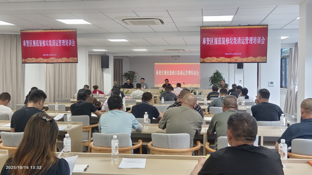 发布时间:2025-10-1710月16日下午,奉贤区市容环境卫生管理所召开规范装修垃圾收运管理培训会。各街镇、海湾旅游区相关工作负责人以及本区20家装修垃圾运输中标企业负责人等参加培训。