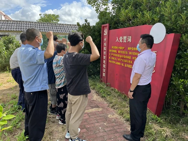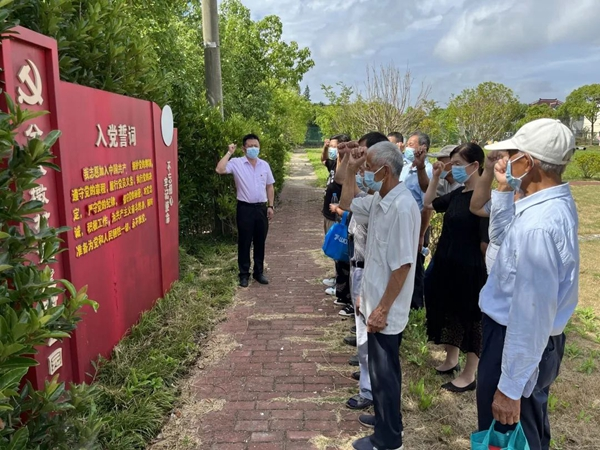 7月1日上午,在分水墩村党总支书记陈刚的领誓下开展重温入党誓词活动,党员干部以饱满的热情和洪亮的声音进行宣誓,庄重的承诺响彻上空。