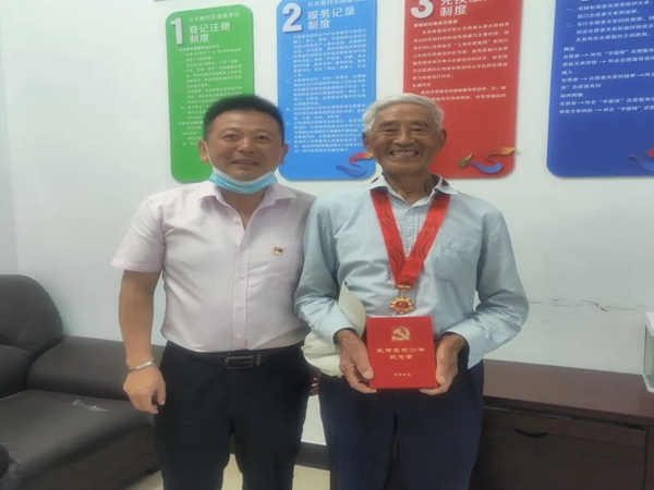 6月30日下午,分水墩村村书记陈刚陪同头桥集团副总王晓丽,登门为年满入党50周年的老党员(卫建国)颁发纪念章,并与老人进行交谈。7月1日上午,为5名年满入党50周年老党员颁发纪念章。