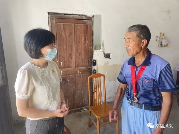 七一前夕,头桥集团纪委书记倪巧英来到幸福村为在党50周年老党员颁发纪念章。