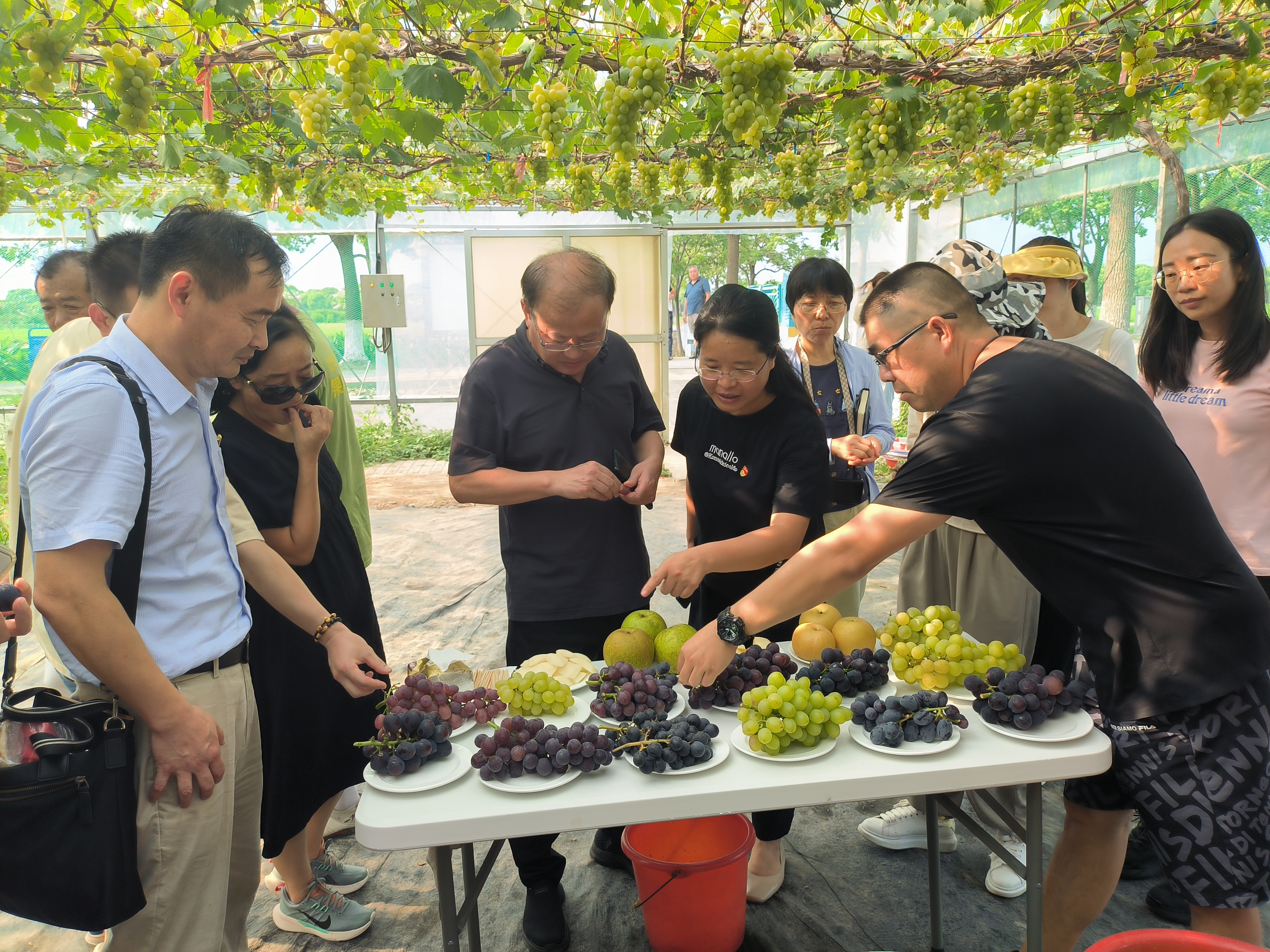 学习会后,全体人员参观了庄行综合试验站林果新品种试验区,了解了当前葡萄、蜜梨特性,在交流中表示要共同大力推广适合本地种植的新品种,丰富果品种类,提高果农效益。