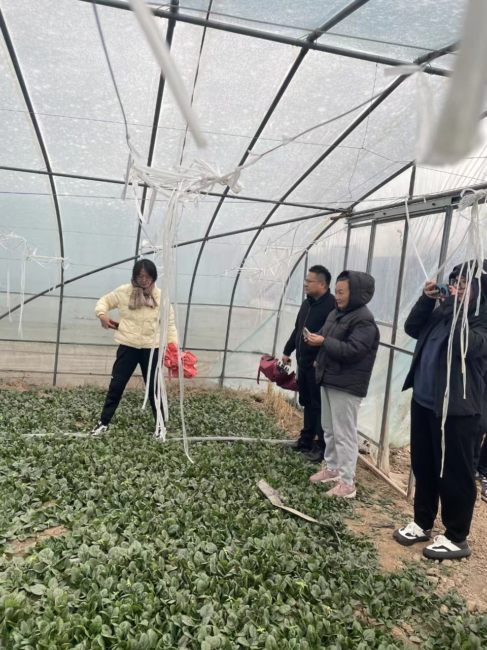 近日,区农技中心主任陶赛峰、副主任吴珏等一行,来到奉城镇勤阔合作社、飞益合作社、南桥镇玺爱合作社、柘林镇艾妮维合作社,调研寒潮雨雪天气蔬菜生产保供工作。陶主任一行深入蔬菜种植基地,实地查看蔬菜长势以及保温保暖措施落实情况,与种植户面对面交流,详细了解寒冷空气对蔬菜生产的影响,提醒种植户密切关注天气变化,适时做好保温防冻工作,最大限度减少极端严寒天气对蔬菜生产的影响,确保蔬菜大棚正常生产。