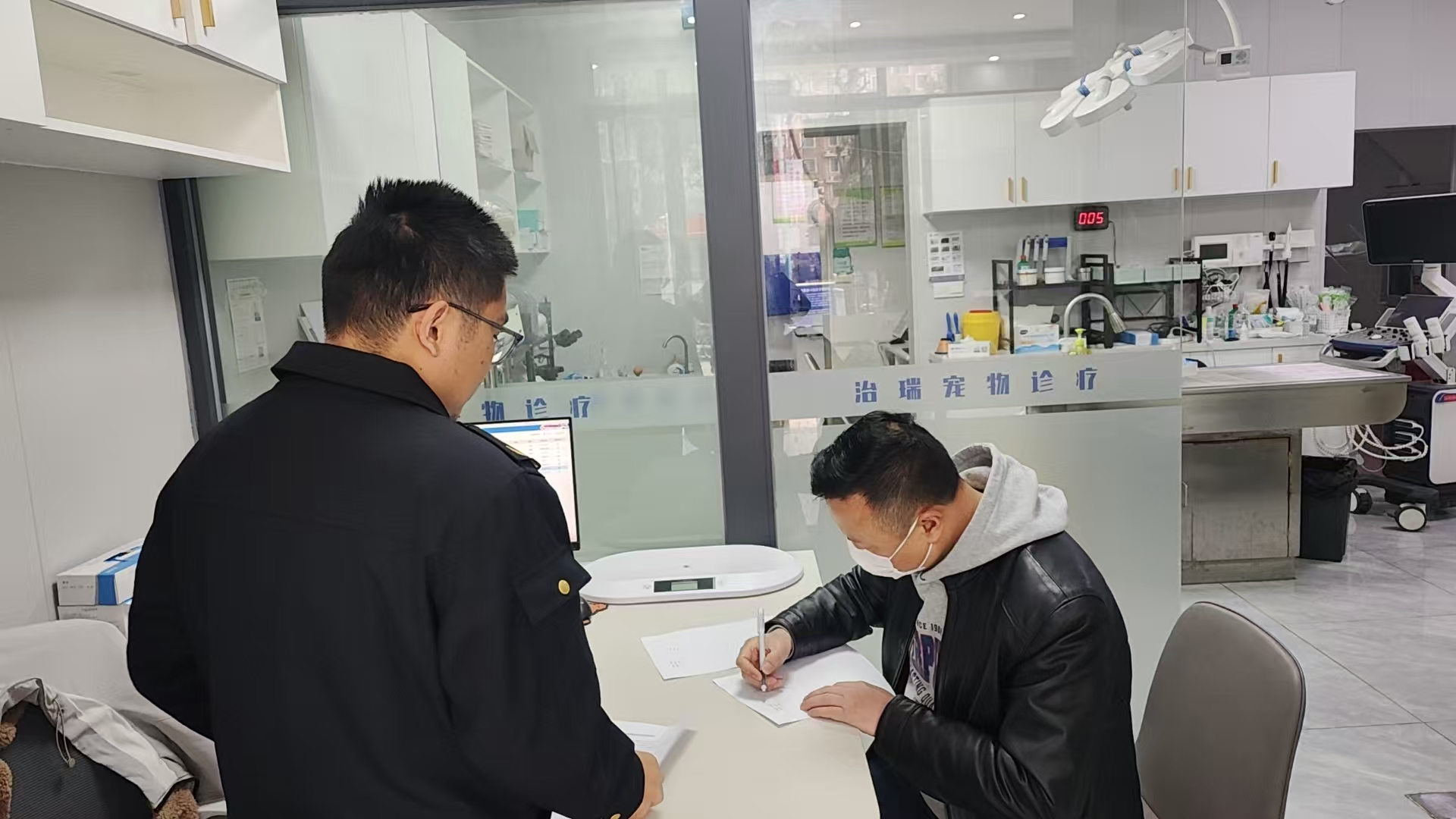 为切实加强我区动物诊疗机构监管,提升服务质量,进一步规范动物诊疗行业,保障市民的身体健康,防止人宠共患病的发生,根据《中华人民共和国动物防疫法》、《动物诊疗机构管理办法》、《执业兽医和乡村兽医管理办法》等法律法规的规定,落实《关于加强兽用麻醉药品和兽用精神药品管控工作的通知》(沪农委[2024]307号)的精神,2025年1月底至2月中旬,执法三中队对辖区内的动物诊疗机构及执业兽医开展了2025年年度告知承诺工作。