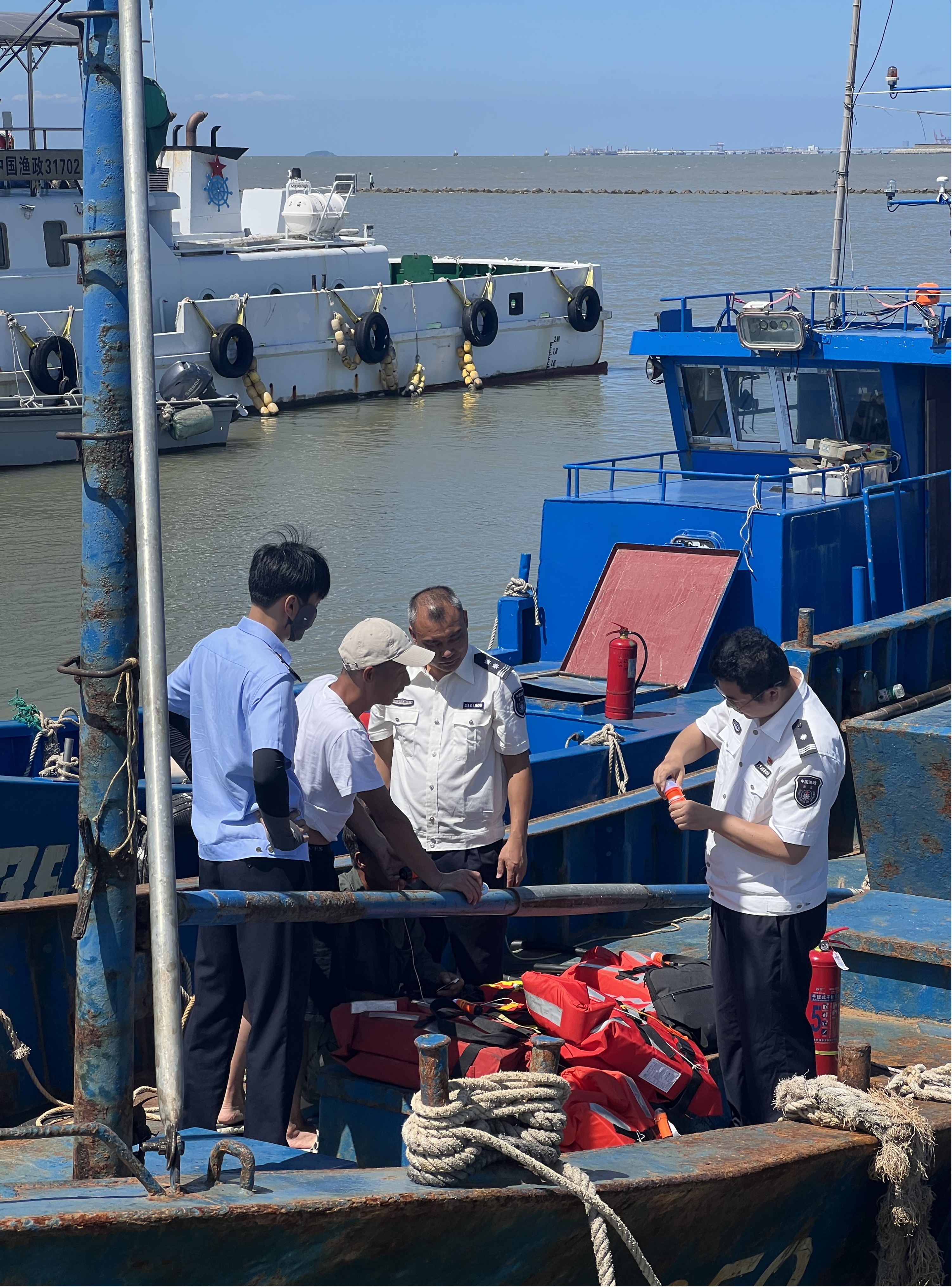 7月7日上午,执法一中队联合洋山海洋经济发展局执法大队、滩浒新村组成专项检查组,对金汇港码头停泊船只开展联合安全检查。此次行动共出动执法车辆3台,渔政、海事执法人员及村干部6人,检查36艘渔船,筑牢海上安全防线。