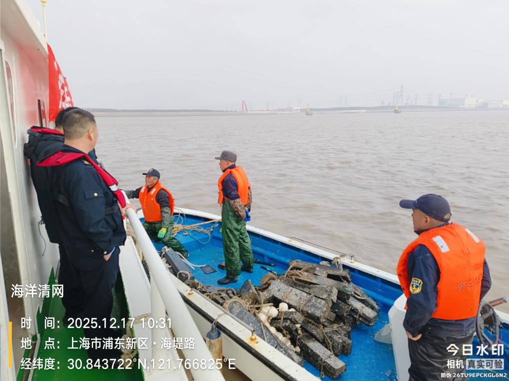 奉贤区农业农村委员会执法三中队参加海洋非法网具清理工作
