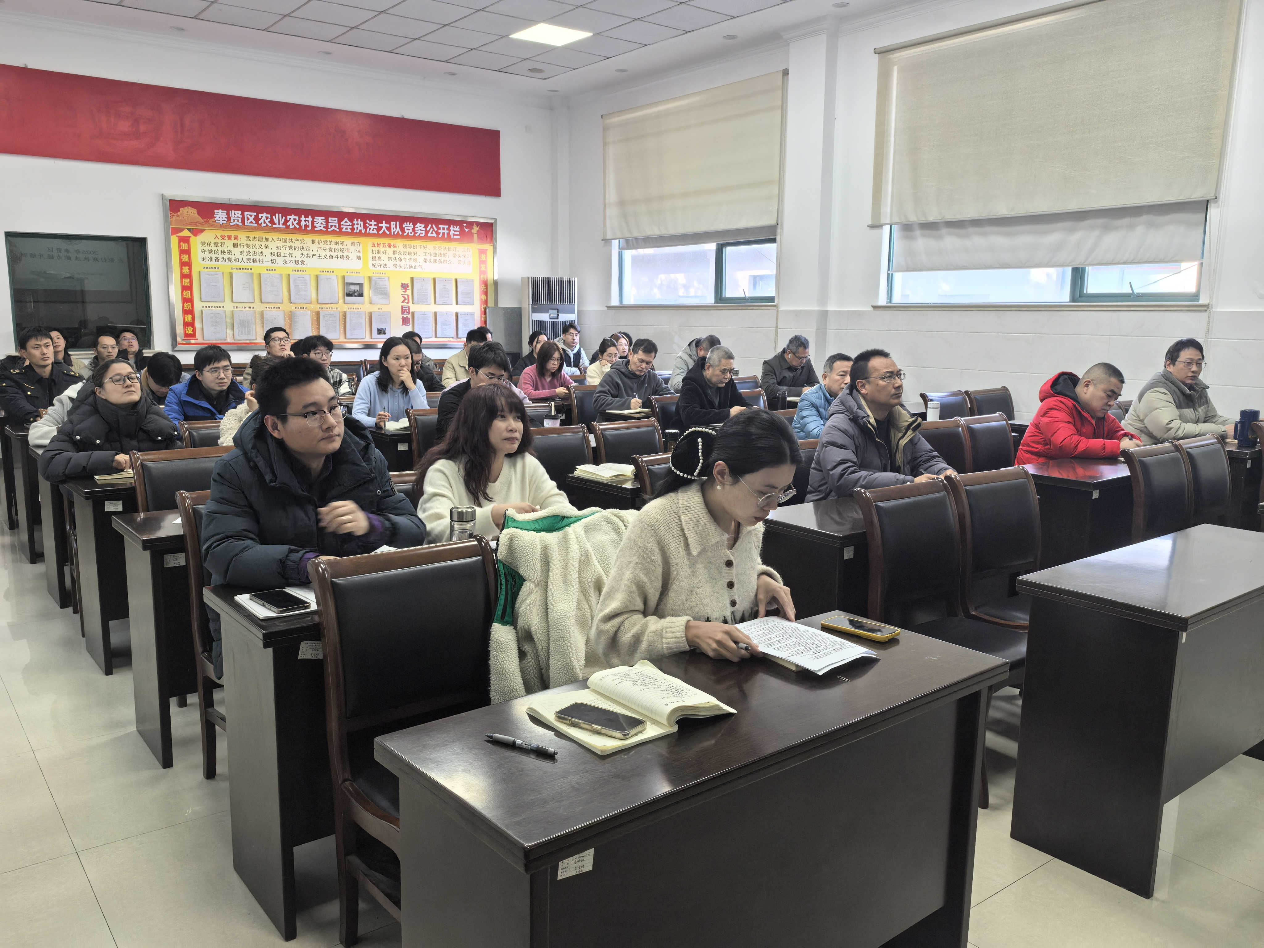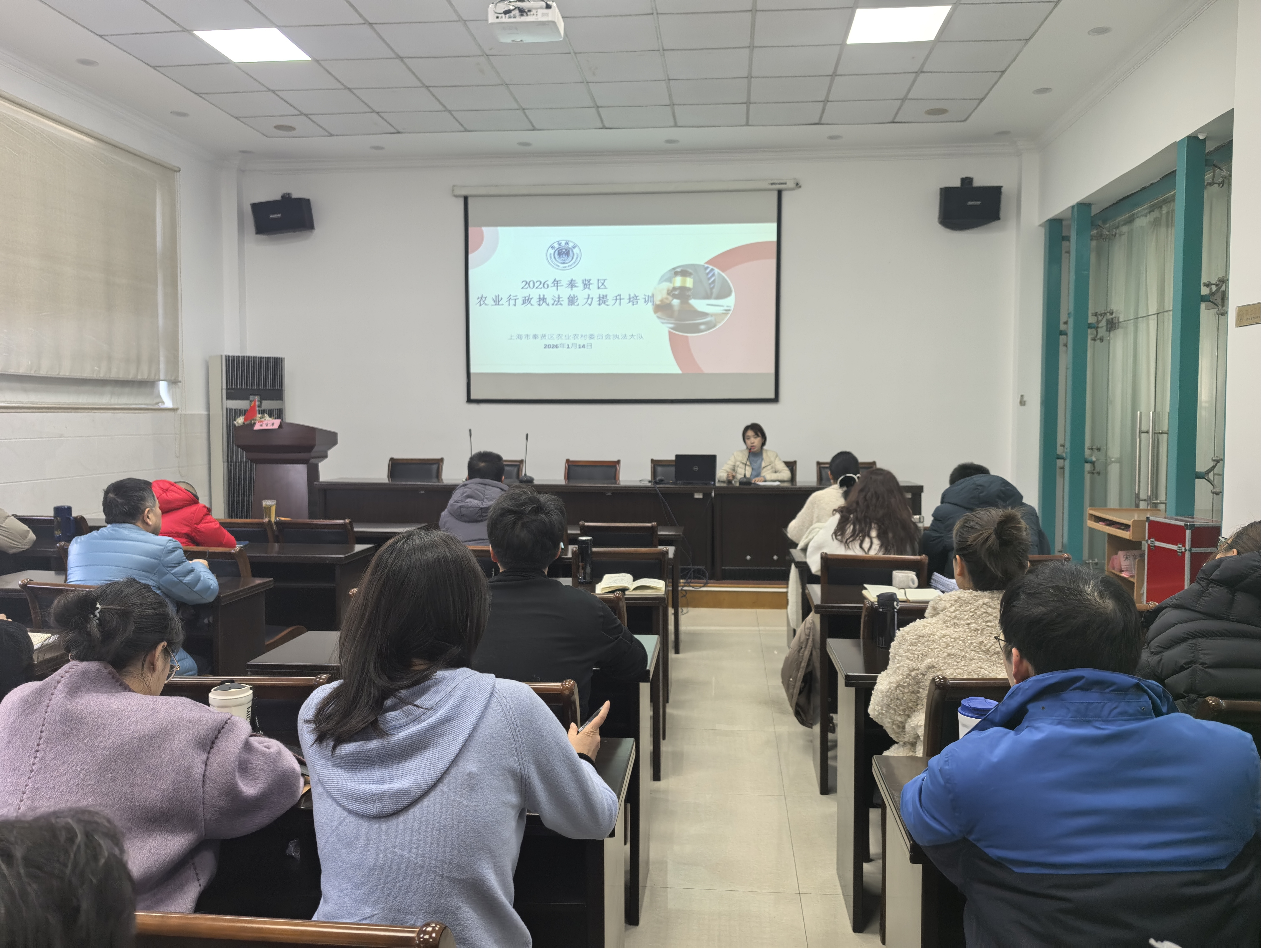 为深入贯彻习近平法治思想,持续加强农业行政执法队伍建设,进一步提升执法人员业务能力和执法规范化水平,切实筑牢“三农”发展法治根基。2026年1月14日,奉贤区农业农村委员会执法大队组织全体执法人员,成功举办“2026年奉贤区农业行政执法能力提升”专题培训。