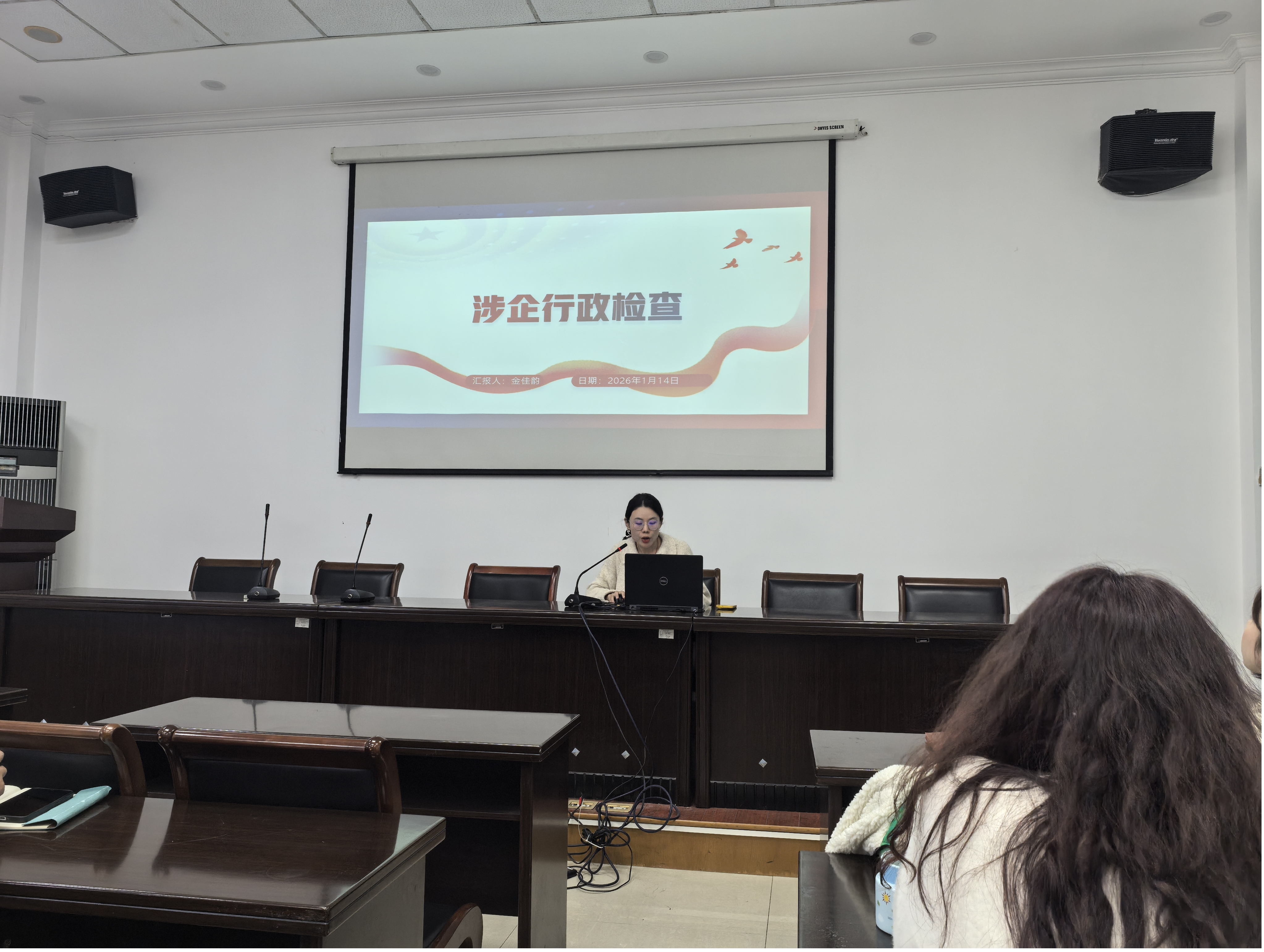 培训会上,金佳韵同志首先就涉企行政检查工作规范进行专题授课。她系统解读了检查计划统筹、程序规范、文明执法等关键要求,并重点对“检查码”的操作流程、应用场景及注意事项进行了现场演示和详细讲解,为提升涉企检查的透明度、规范性和效率提供了明确指导。