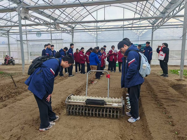 "人工播种靠经验,撒得多了浪费种子,撒得少了出苗稀疏,不仅效率低,还有重播漏播的问题。而自动播种机通过精量控制系统,每粒种子均匀落在土上,毫不费力就完成了播种任务。自动收割机避免了弯腰劳动,让人从繁重的劳动中解脱出来。"赛后,同学们分享体会。