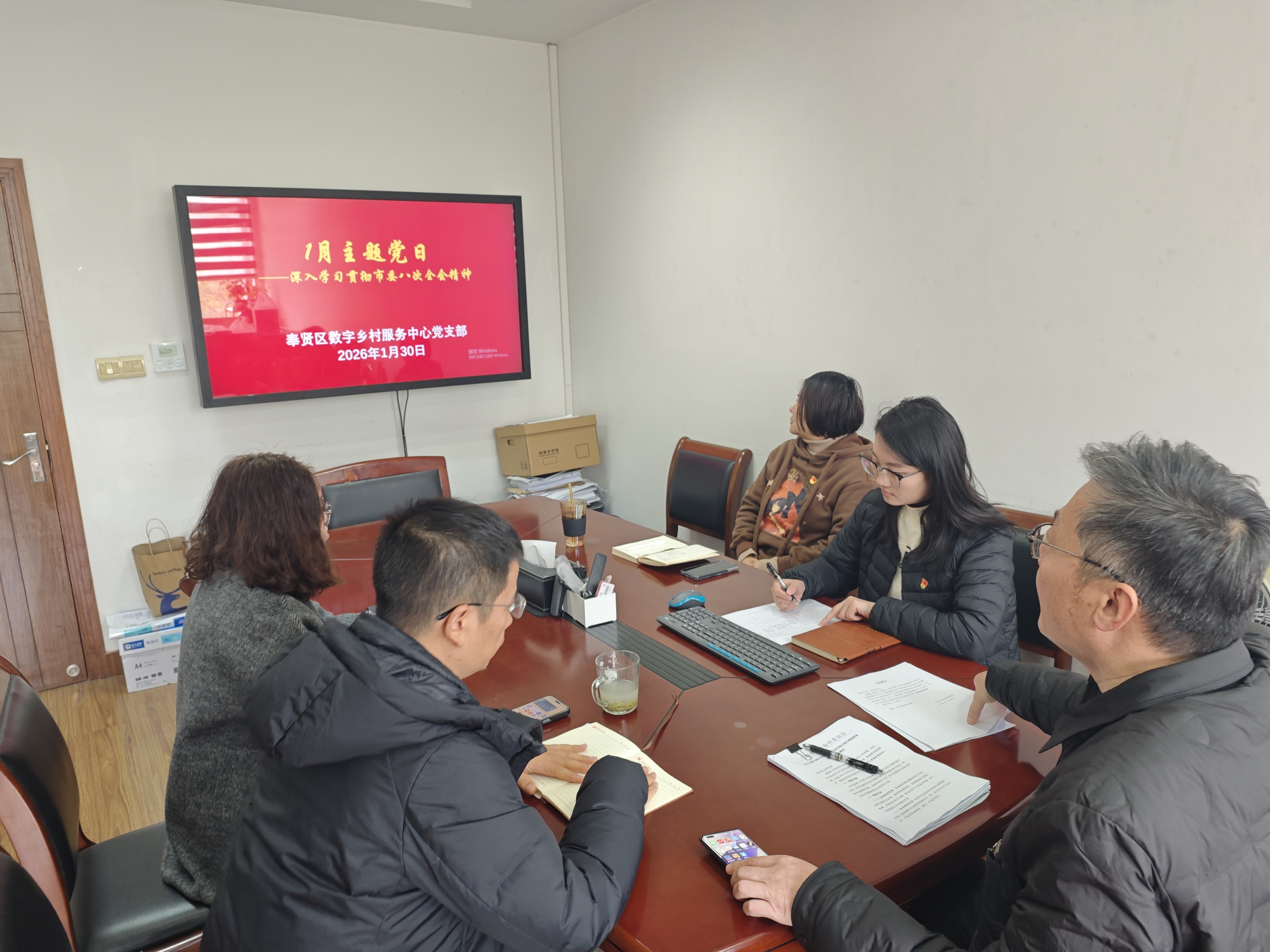 1月30日,区数字乡村服务中心党支部组织开展1月主题党日活动,全体党员参会,重点围绕两项核心内容开展集中学习、交流研讨。