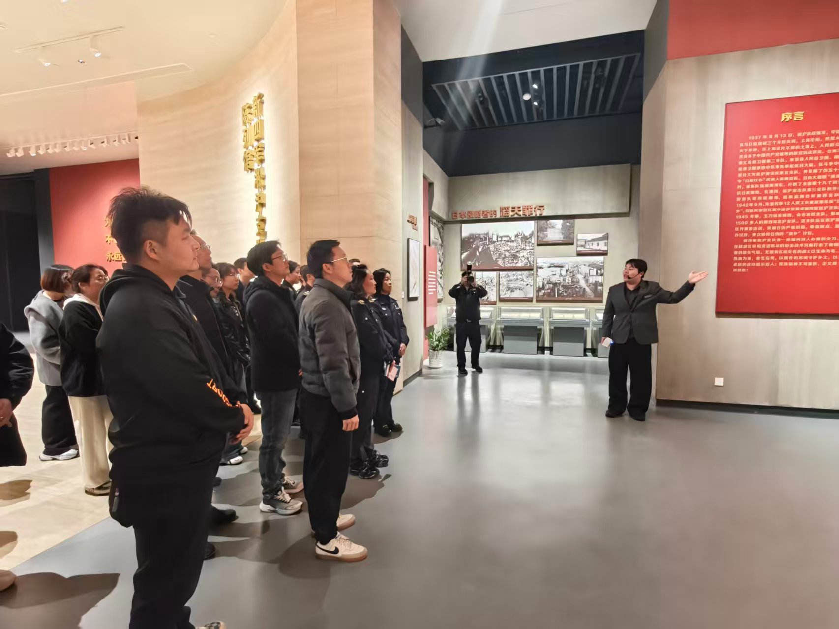 在讲解员的引导下,全体人员先后参观了奉贤区烈士事迹陈列馆、新四军淞沪支队陈列馆,通过珍贵史料、历史文物、实景陈列等,深入感受革命先驱的觉醒历程与英勇事迹,了解新四军淞沪支队的发展脉络,重温全民族抗战时期中国共产党领导的抗日武装在上海郊区的斗争事迹。