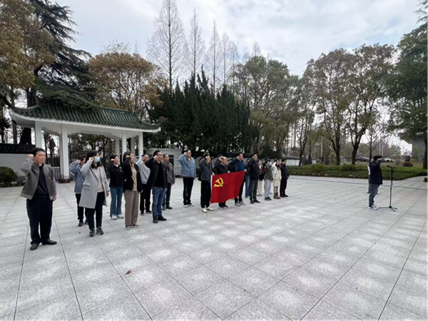 现场参观结束后,全体党员步行前往革命烈士陵园纪念广场,举行庄重肃穆的祭扫仪式。全体人员整齐列队,奏唱国歌、宣读祭文、敬献花圈,向革命烈士纪念碑三鞠躬致敬,并重温入党誓词。随后,大家缓步前往烈士墓区,瞻仰缅怀革命先烈。