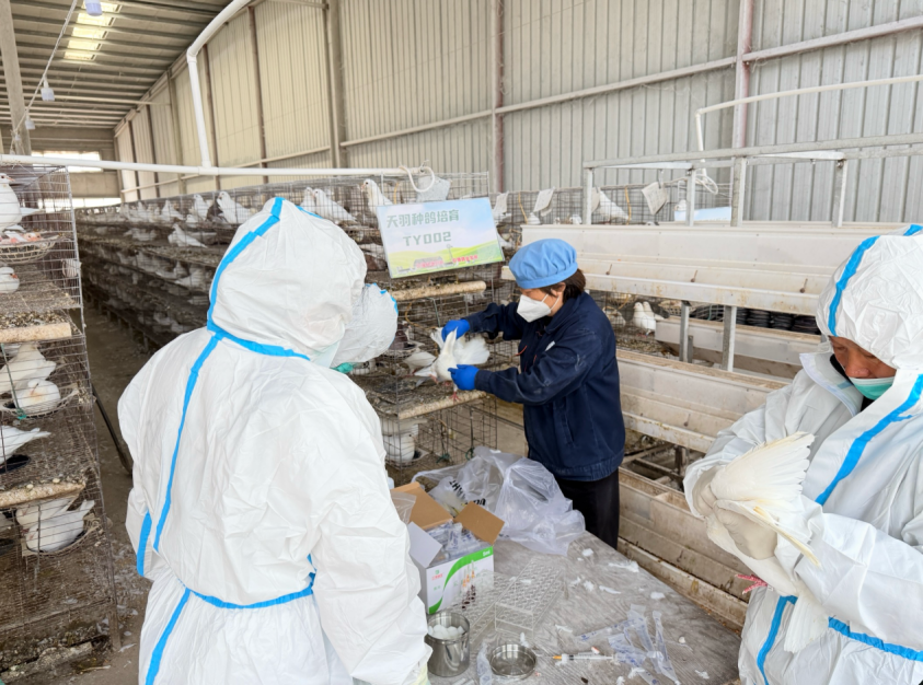 技术人员严格开展流行病学调查,全面勘察养殖环境、核查饲养管理情况,并规范采集病鸽和饲料样本送检。中心立即启动应急检测绿色通道,党员检测团队加班加点,采用荧光定量PCR等技术,对鸽瘟等高发疫病及饲料毒素进行专项筛查。检测后,中心第一时间反馈结果,制定了个性化防控方案,有效稳控养殖户损失。后续,中心与该场建立“一对一”跟踪服务机制,持续做好技术指导。