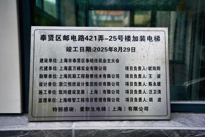 在整个项目周期中,“最难啃的硬骨头”当属前期业主征询工作。奉城镇城建中心房管负责人黄华坦言,加装电梯涉及不同楼层居民的利益诉求,低楼层居民担心采光、噪音影响,高楼层居民关注费用分摊与出行便利,意见统一难度较大。为确保项目高效推进,奉城镇城建中心引入第三方上海嘉万梯实业有限公司协助开展工作。奉城镇城建中心牵头,由嘉万梯公司、社区、物业组建专项沟通小组,通过数十次上门走访、多场政策解读会、发放图文并茂的宣传手册等方式,逐户解答业主关于费用、施工周期、后期维护等疑问,最终用耐心与专业赢得了所有业主的认可。