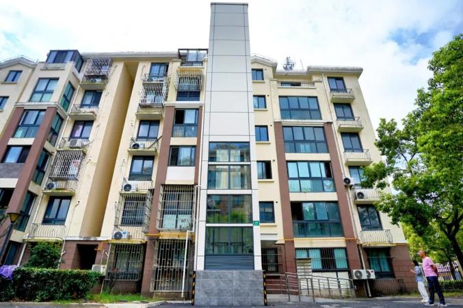 告别“爬楼难”,奉城首部居民加装电梯“上岗”啦!