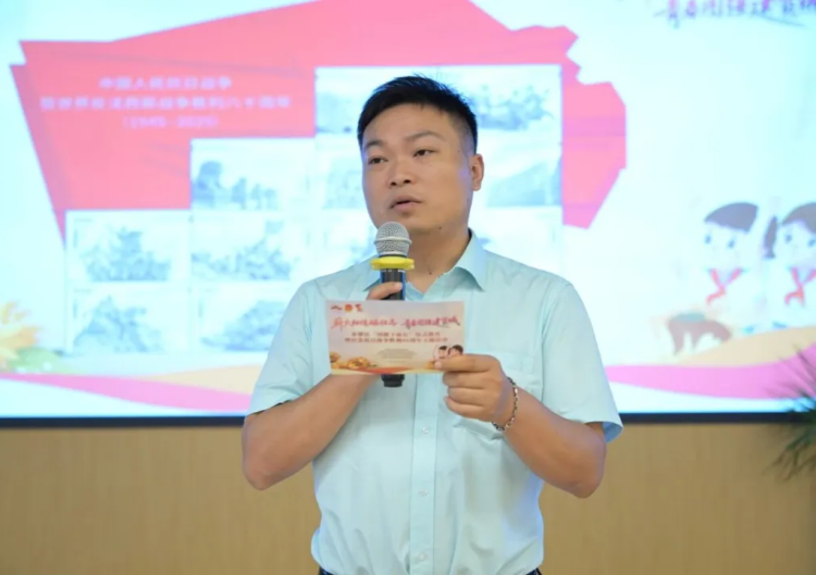 课堂上,肖塘邮政支局的顾凯摇身一变成了“邮票讲师”。他手持新发行的《中国人民抗日战争暨世界反法西斯战争胜利八十周年》纪念邮票,娓娓道来:从“台儿庄战役”的浴血奋战,到“地道战”的智慧抗敌,每一枚邮票背后,都是共产党领导下中国人民为民族独立抛头颅、洒热血的壮烈篇章。孩子们瞪大眼睛,专注聆听,仿佛通过这些方寸小物,触摸到了那段可歌可泣的岁月。顾凯用通俗的语言,将复杂的史实讲得生动有趣,让红色精神在孩子们心中悄然生根。