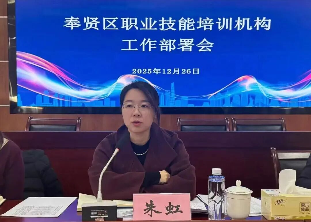 12月26日上午,奉贤区人社局召开职业技能培训机构工作部署会。区人社局党组成员、副局长朱虹出席会议并讲话。区人社职业技能培训条线相关人员及全区职业技能培训机构负责人参加会议。