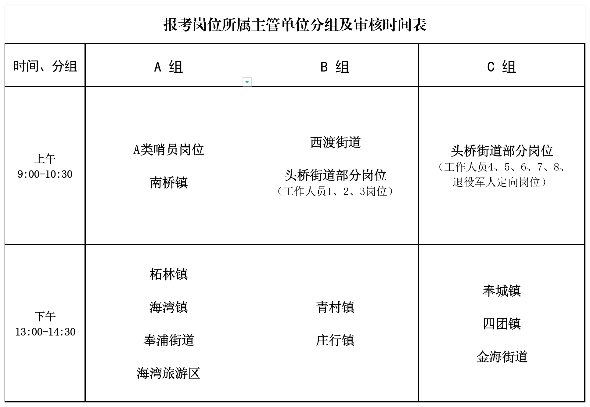 1、请考生线下提交材料时,严格按照报考的主管单位及岗位对应的时间和组别准时前来,逾期未至者,视为自动放弃面试资格。