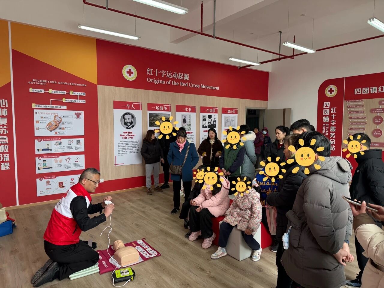 走进红十字展厅,大小朋友们在工作人员的引领下,学习了使用心肺复苏与自动体外除颤器(AED)协同救人的关键知识。通过现场演示与讲解,大家了解了在紧急情况下如何高效进行胸外按压,以及AED的智能操作要领。家长和孩子们凝神聆听,急救的初步概念和“时间就是生命”的重要性悄然印入大家的心中。