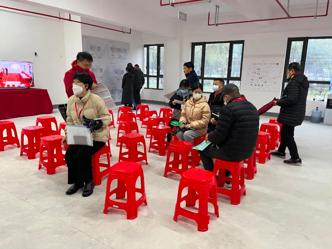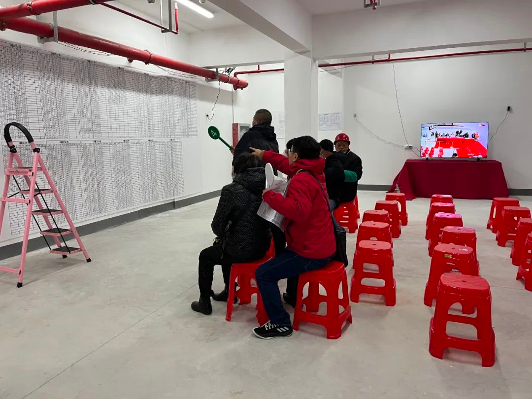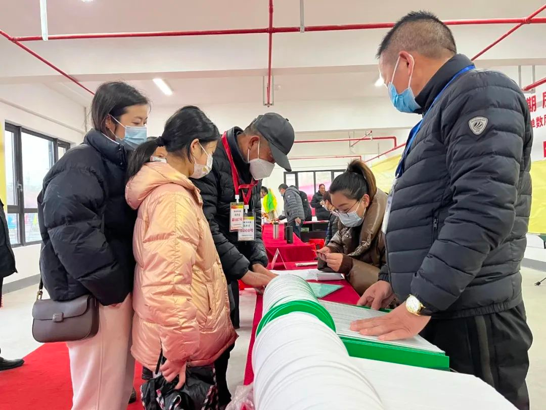 早上7点半,在奉馨苑选房现场,工作人员检查完所有现场设施后,提前10分钟打开了大门,首批等候的村民们立即排队进入了现场。经过身份确认,第一批10户村民拿着号码牌由工作人员引导至指定区域候场,等到所有人员到齐后再进入内场,按照规则依次选房。