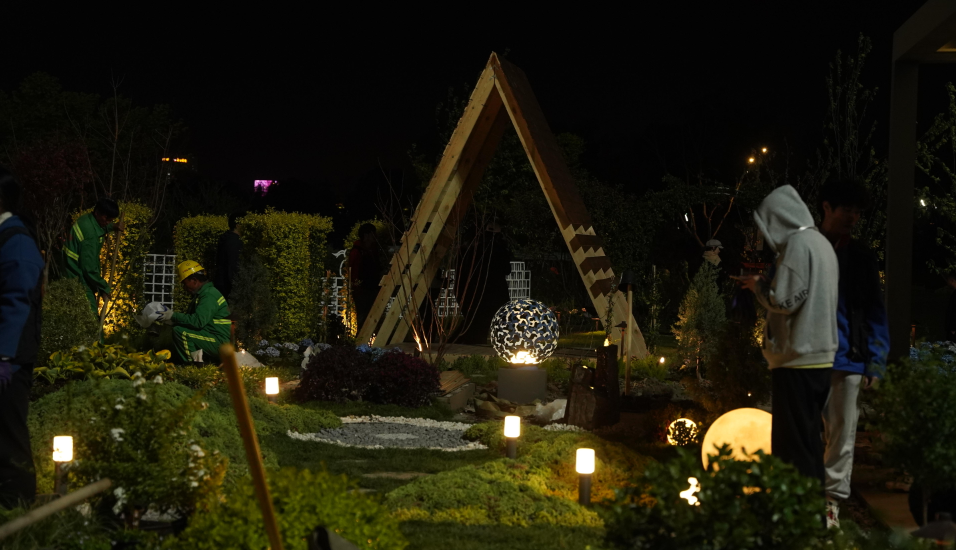 “我们花境所处的位置是在泡泡公园,那么我们在设计的过程当中,就会找一些元素来体现泡泡的概念。”上海应用技术学院大学生态技术与工程学院学生叶媛媛,指着场地中的圆形灯具和艺术装置娓娓道来,“我们觉得非常荣幸,能在本科阶段把自己的设计落地,非常有意义。”她的同学陆欣怡正在检查小喷水装置的运转情况,第一次参加花展项目实践,同学们都十分投入,力求尽善尽美。“希望大家会喜欢我们的作品。”