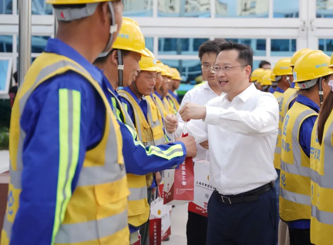 7月17日一早,区委书记袁泉前往宝龙城市广场、奉贤新城08单元06-02区域项目工地和百联南桥购物中心广场,开展高温慰问活动。