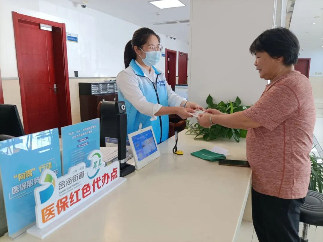 “真是太感谢你们了,真的是全心全意为我们老百姓服务,省去了我们跑来跑去的麻烦!”8月2日,徐阿姨来到金海街道社区事务受理服务中心取回自己的证件,脸上洋溢着满意的笑容,并频频竖起大拇指点赞医保服务直通车。
