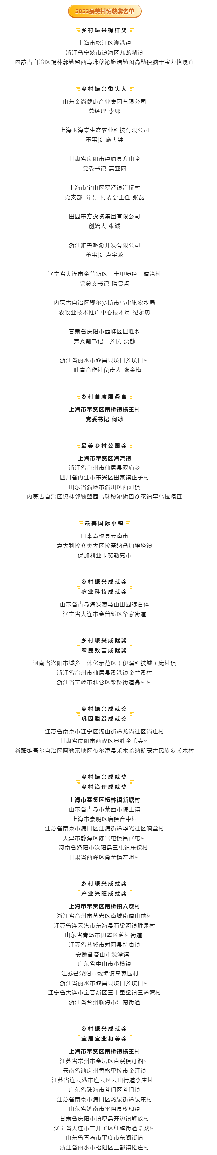 2023最美村镇获奖名单公布,奉贤揽获5大奖项!