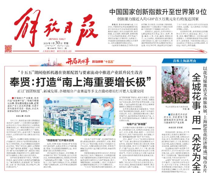 今日解放日报头版头条!奉贤:打造“南上海重要增长极”