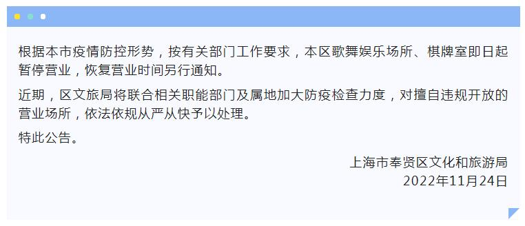 关于本区歌舞娱乐场所、棋牌室等暂停营业的公告