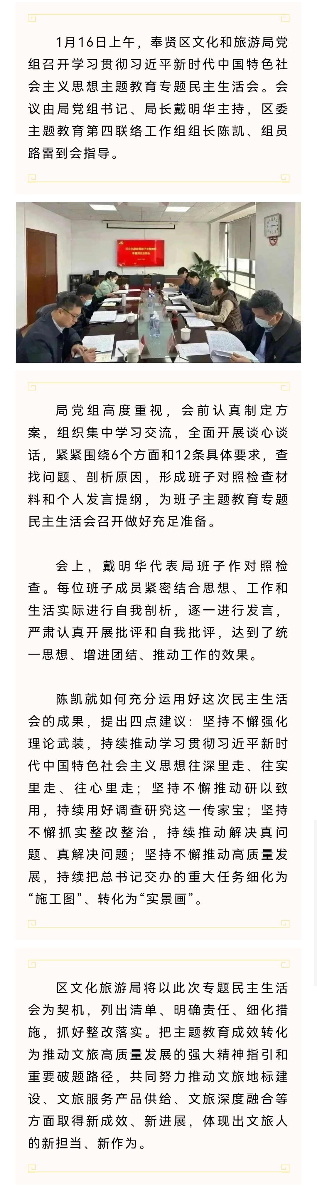 区文化旅游局党组召开学习贯彻习近平新时代中国特色社会主义思想主题教育专题民主生活会