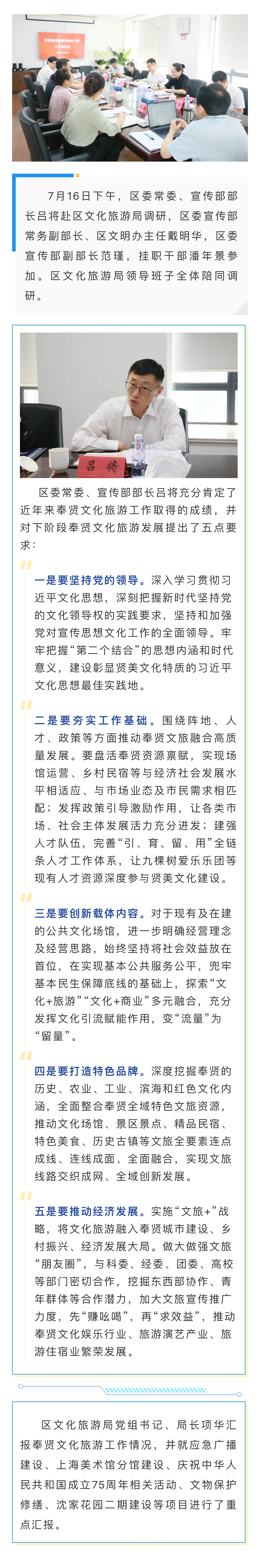 区委常委、宣传部部长吕将调研奉贤文旅工作