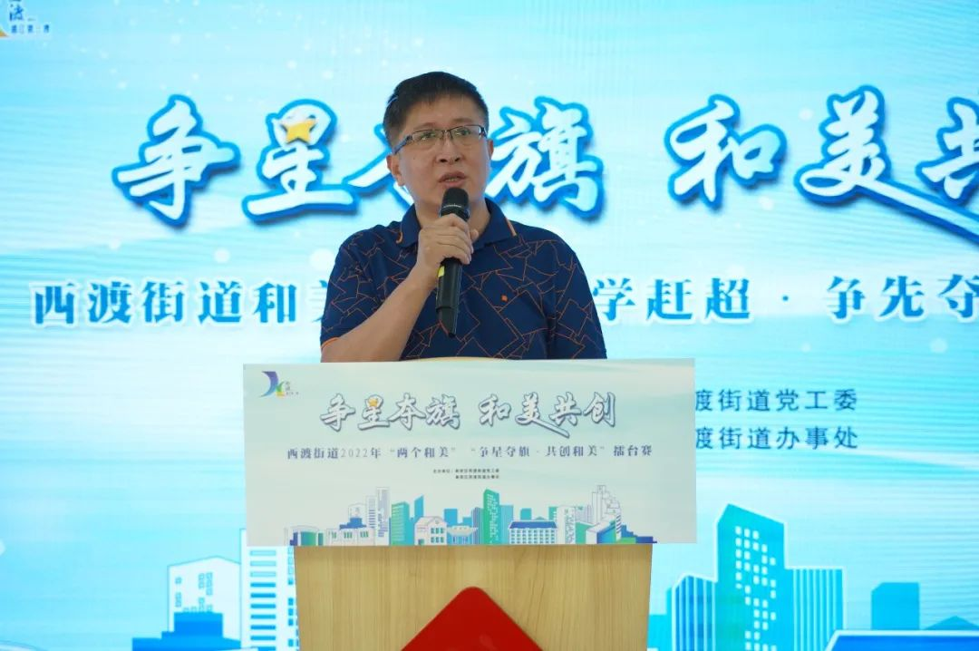 2022年是“两个和美”第二轮创建收官之年,为有力践行“人民城市人民建,人民城市为人民”重要理念,进一步凸显“生态村组·和美宅基”、“宜居小区·和美楼组”创建成果,西渡街道于9月27日举办“争星夺旗·和美共创”擂台赛。区地区办党组成员、副主任叶敏,西渡街道党工委委员、办事处副主任周凤出席。