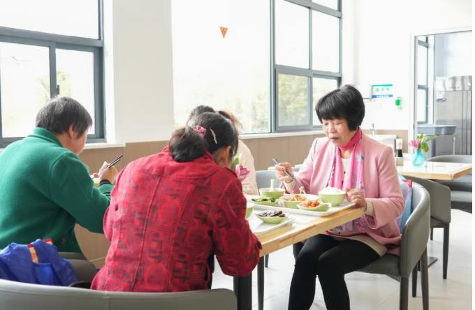 除了性价比拉满的餐食,食堂的暖心服务细致入微。对于行动不便的长者,工作人员会主动协助送餐盘、推轮椅、回收餐具,全程贴心陪护。就餐区旁还配备医疗箱、血压仪、身高体重测量仪,老人就餐时可免费做简易健康检测,一站式兼顾饮食与健康需求。
