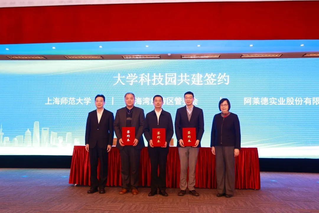 上海师范大学、海湾旅游区管委会和阿莱德企业发展有限公司进行了上海师范大学的大学科技园共建签约。