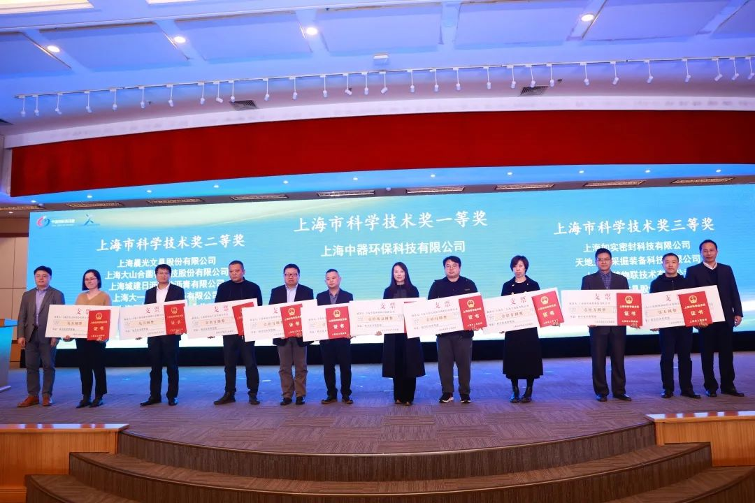上海中器环保科技有限公司、上海晨光文具股份有限公司等10家荣获2022年上海市科学技术奖的区内企业获得现金支票。