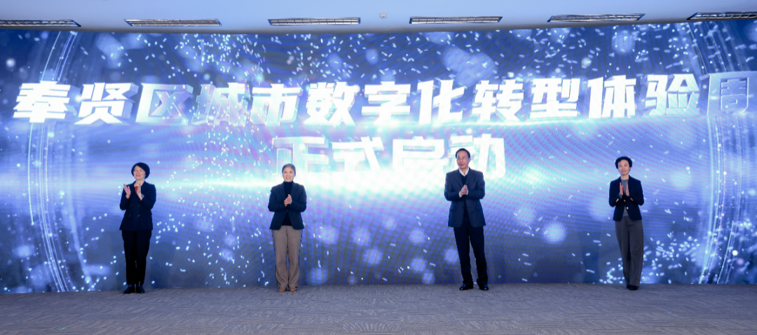 区委副书记唐晓腾、区人大常委会副主任包蓓英、副区长厉蕾,区政协副主席、科委主任卓雅一同上台启动“2023奉贤区城市数字化转型体验周”活动。
